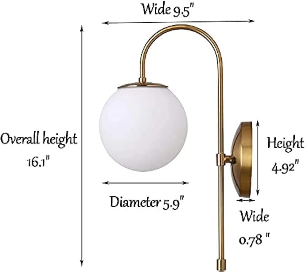 A k 40 Watts Gold Wall Sconce Lighting, Frosted Glass Globe Shade Wall Sconce