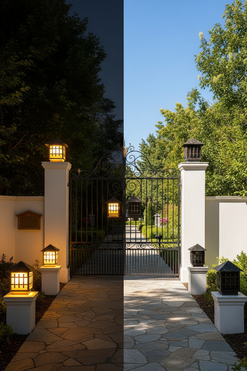 Inverted Black Iron Gate Light combines industrial elegance with modern design. Its inverted structure, matte black finish, and soft downward illumination create a bold yet refined lighting accent — perfect for contemporary gates, villas, and architectural outdoor spaces.