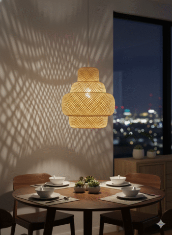 Crafted from premium-quality natural materials, the lamp is lightweight, durable, and environmentally sustainable. Its smooth finish and handmade detailing ensure that every piece is one-of-a-kind, radiating charm and sophistication wherever it’s placed.