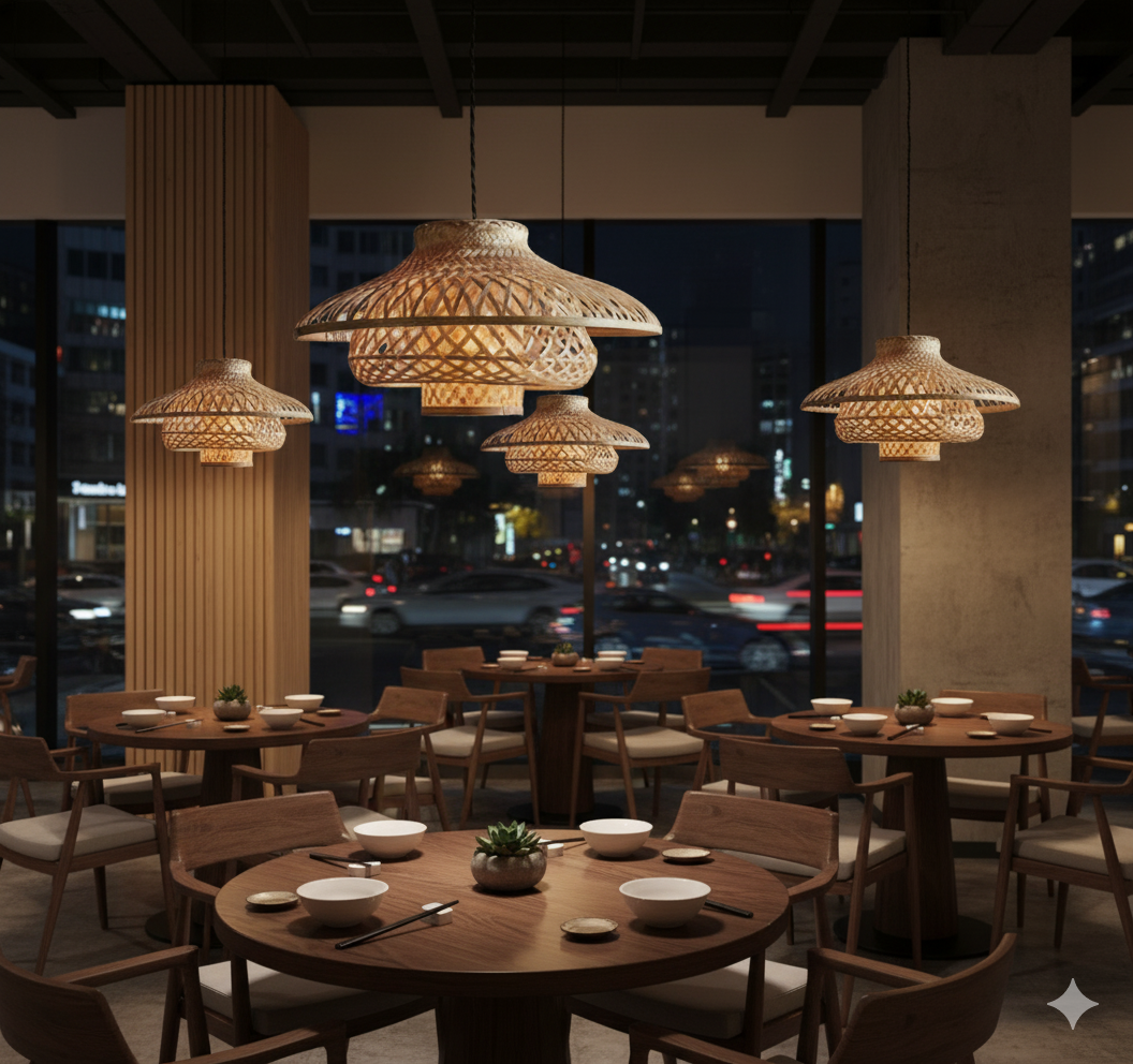 The intricate cross-weaving allows light to pass through beautifully, creating a warm and ambient glow ideal for living rooms, dining areas, cafés, and restaurants. Designed for those who appreciate minimalist yet artistic lighting, this shade enhances any space with its natural charm and timeless texture.