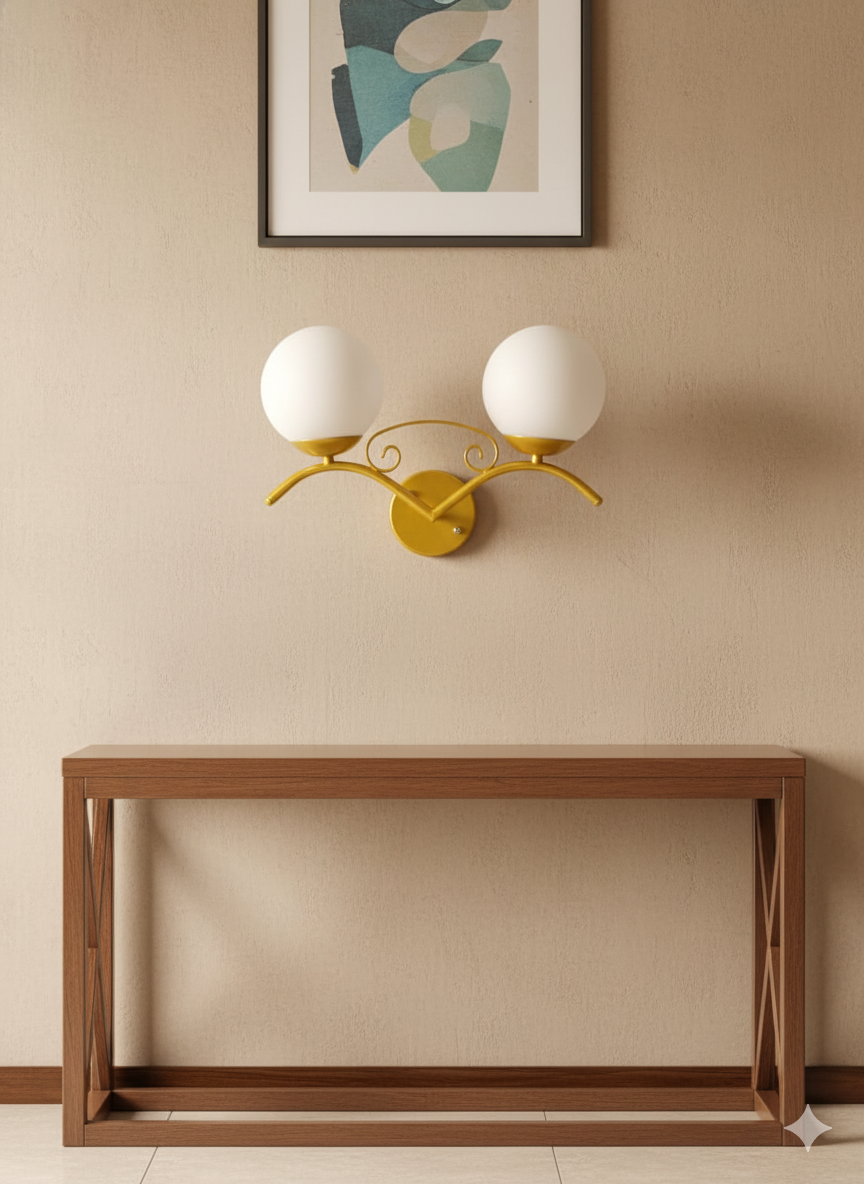 The Royal Diamond Surface Mounted 2-Way Globe Shade Wall Light is a premium decorative lighting fixture designed to bring elegance, brightness, and modern charm to your home décor. Featuring two globe-shaped shades with a stylish surface-mounted metal frame, this wall lamp delivers soft, balanced, and multidirectional lighting that enhances any room.